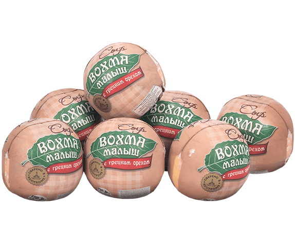 Этим летом было решено расширить линейку сыра «Вохма Малыш», нашего самого популярного и полюбившегося костромичам и гостям города. Для создания нового вкуса в состав была добавлена специя: натуральный грецкий орех. Грецкий орех, обладая замечательным вкусом, высокой питательностью и полезностью для организма, очень гармонично сочетается со сливочным вкусом сыра и придает ему пряные ореховые нотки. Кусочки орехов равномерно распределены по всему сыру.