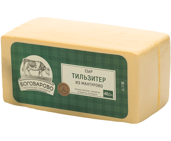 "Тильзитер" - это полутвердый сыр, приготовленный из коровьего молока, закваски и сычужного фермента. Он обладает бледно-желтым цветом, пикантным, даже немного острым вкусом. Сырный рисунок представлен большим количеством некрупных дырочек. Этот сорт сыра отлично сочетается с ржаным хлебом или же употребляется самостоятельно в виде ломтиков комнатной температуры. А также широко используется в кулинарии для приготовления салатов, закусок, первых блюд, соусов и выпечки. Сыр богат широким спектром витаминов группы B. Также в нем присутствуют витамины А, PP, E. Разумеется, поскольку продукт кисломолочный, он богат кальцием и натрием.